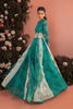 Teal green multihues anarkali with attached embroiderd belt.