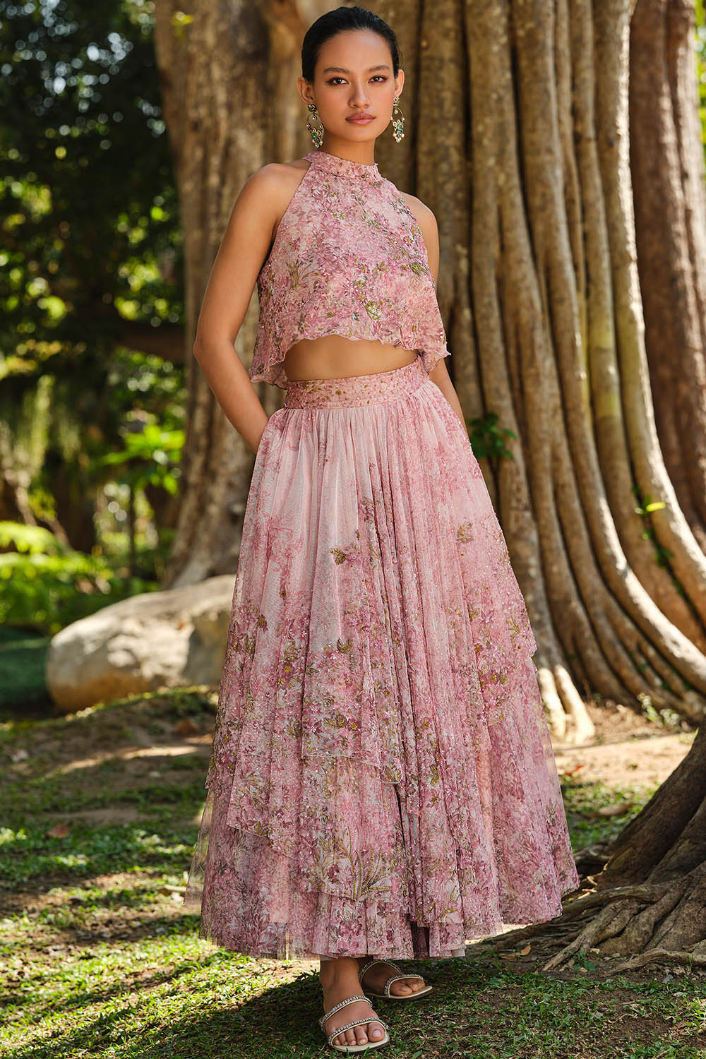 A memory of painterly florals and tranquil plains is evoked with our Seraphim skirt set. Crafted in a light-as-air and dreamy silhouette, it is elevated in beads & sequins.