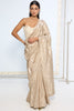 Introducing our pure silk zari saree in an elegant beige, handwoven over hours in the traditional Kadhwa Banarasi technique. Designed with bold, animal-inspired silver zari stripes, it is lightweight, fluid, and perfect for festivities or special occasions.