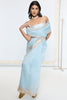 This icy blue organza silk saree features a delicate scalloped border, finished with subtle embroidery. Airy yet lush, it’s one of the most drapeable organza silks we’ve ever made, perfect for dressing up without weighing down.