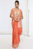 This orange saree is handwoven in pure georgette using the Kadhwa Banarasi technique, with intricate hand embroidery adding texture and depth. Light, fluid, and rich in detail, it’s a blend of age-old artistry and effortless wearability.