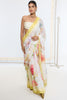 This vanilla cream Banarasi saree features vibrant digital print all across, and comes hand-finished in pure crepe. Light as air and bold by design, it’s made for women who like their celebrations fresh, fun, and full of colour.