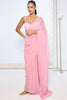 Our pink pure chiffon saree is adorned with an all-over white polka dot pattern, bringing a playful yet timeless touch to a classic silhouette. Lightweight and fluid, this saree drapes effortlessly and can be styled in endless ways.