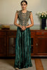 Benazir emerald green embroidered velvet back tie-up choli with velvet sharara pant.
