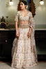 Sultana cream georgette embroidered choli and cream ochre forest whisper printed organza embroidered lehenga with cream organza printed embroidered dupatta.