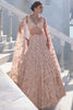 This lehenga set features heavy three-dimensional cut work embroidery in crystal, thread, pearl and sequin. The blouse shows cut work embroidery with delicate pearl tassels at the waist and 3D flowers at the back. It is paired with the heavily embroidered dupatta with floral motifs and pearl tassels all over.