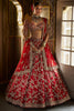 This lehenga set features zardosi embroidery in gold, pearls, crystals and sequins. The lehenga set has scalloped details in ghera, blouse and dupatta. The full sleeve blouse shows delicate crystal tassels at the sleeve hem and waist. The ensemble is paired with an embroidered dupatta with tassels on all four sides.