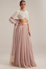 Ash pink skirt paired with mirror and pearl embroidered high neck blouse and stole with cascading pearl tassels.
