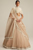 Light beige organza mirror and pearl lehenga set, paired with a heavily embroidered high neck blouse and dupatta.
