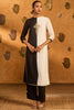 A striking half-and-half black and ivory kaftan, adorned with trinklet tree and heartbeat foil prints. Finished with coin lace all over and a flattering V-neckline, it comes with a matching slip, blending effortless comfort with artistic detailing for a statement-making look.