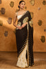 This half n half saree pairs unique prints with subtle detailing. The black palla features a moonfish print framed with gota border detailing, while the pleat area in ivory is adorned with the delicate bloom keeper motif. The blouse, in soft ivory, stands out with hand-embroidered straps, adding a touch of artistry to the look.