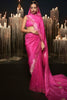 This hot pink handwoven saree is crafted in pure silk using the Kadiyal Banarasi technique and comes laced with intricate gold detailing inspired from the Baroque era.