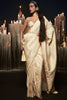 Our beige handwoven saree is crafted in pure satin using the Kadhwa Banarasi technique and comes laced with intricate zari detailing inspired from the Baroque era.