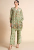 Ibtihl features nature-inspired flora and fauna prints all over. Crafted in crepe, this co-ord is breezy & perfect for daytime. Comes with a curved hem & full sleeves.