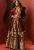 This maroon handwoven lehenga set is crafted in pure satin using the Kadhwa Banarasi technique and comes heavily laced with intricate gold detailing.