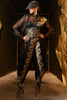 This black handwoven saree is crafted in pure satin using the Cutwork Emboss technique and comes laced with intricate gold detailing inspired from the Baroque era. To complete the ensemble, we recommend adding a statement belt and some gold danglers.
